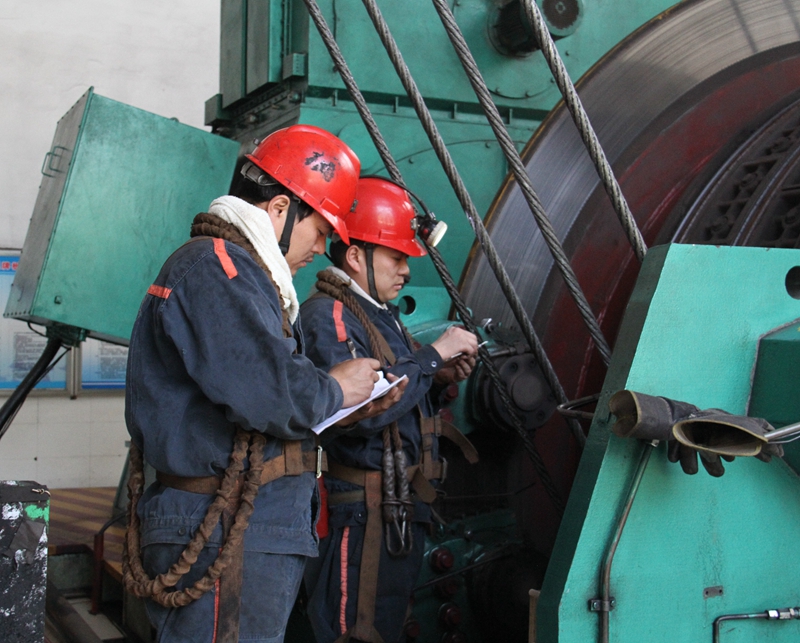 機(jī)電工在精益求精的檢修驗(yàn)繩