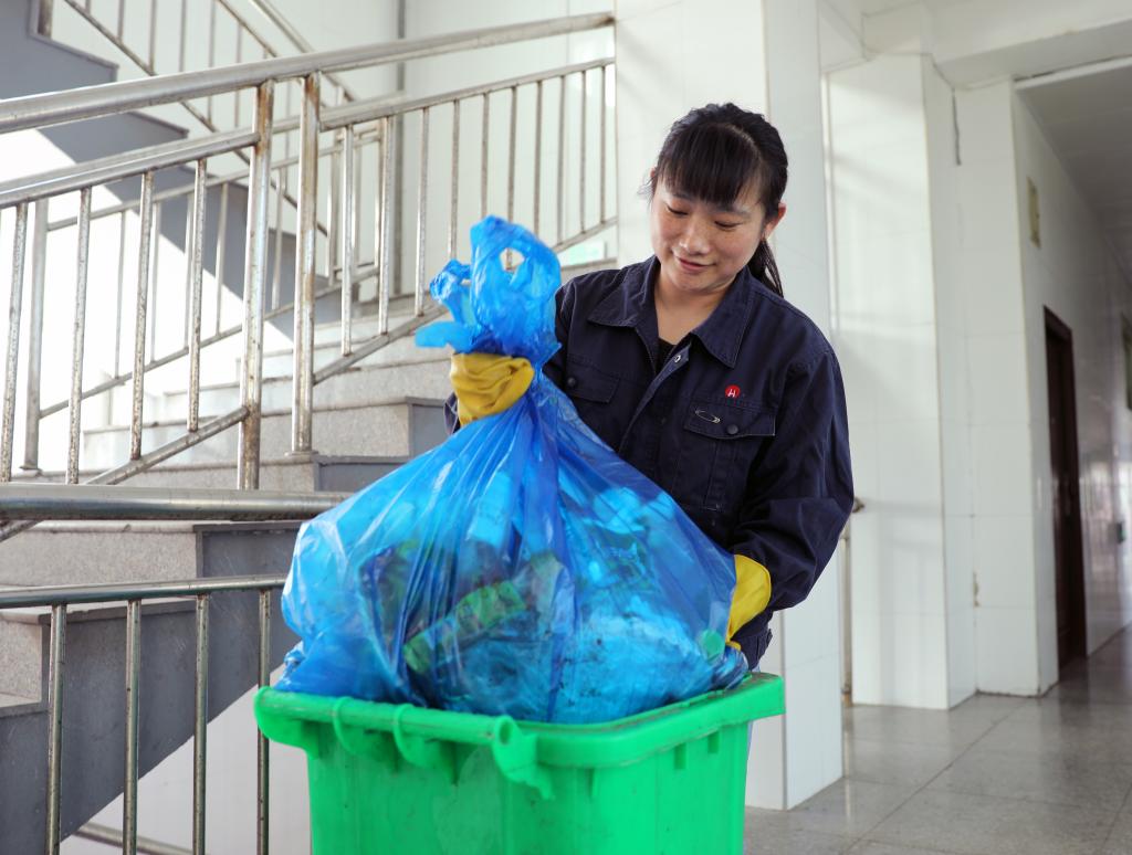 環(huán)衛(wèi)工金菊香正在清掃垃圾?!碍h(huán)境好了,心情也舒暢了,大伙干活也更有勁了,安全也更有保障?!?/p>