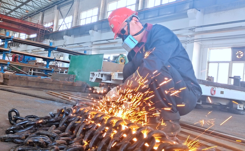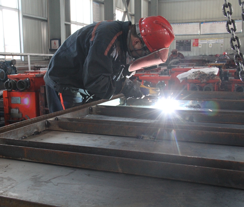 檢修工在“精雕細(xì)刻”的加工單軌吊集裝箱