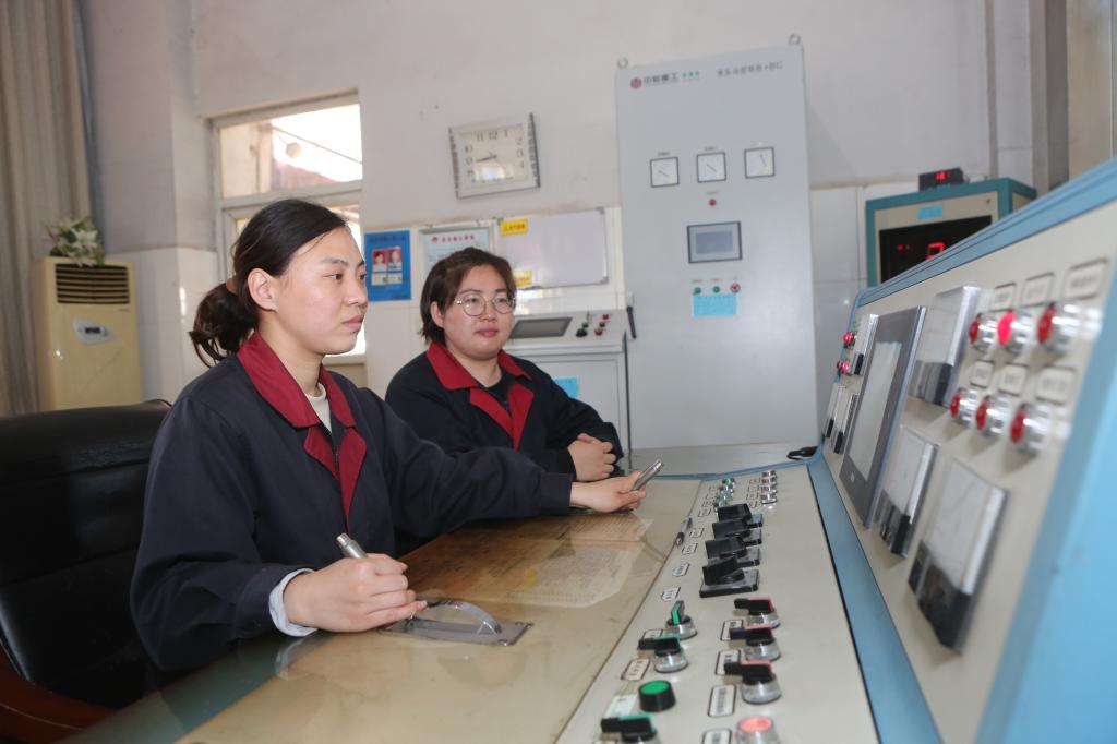 保運(yùn)區(qū)女工陳慧敏、王芳操作新副井提升機(jī)