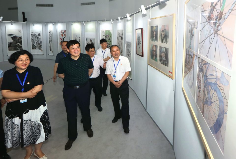 6月29日,由淮北礦業(yè)集團(tuán)工會(huì)、淮北礦區(qū)文聯(lián)主辦的“永遠(yuǎn)跟黨走”慶祝中國(guó)共產(chǎn)黨成立100周年職工美術(shù)作品展,在職工藝術(shù)館開(kāi)幕。不同畫(huà)種的53幅佳作,組合成多彩的畫(huà)卷,見(jiàn)證著黨領(lǐng)導(dǎo)文藝所結(jié)出的豐碩成果?;幢钡V業(yè)集團(tuán)黨委常委、紀(jì)委書(shū)記汪琳,工會(huì)第一副主席劉杰到美術(shù)展現(xiàn)場(chǎng)觀看指導(dǎo)。