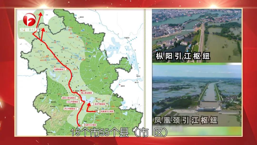工程供水范圍涉及安徽、河南2省15個(gè)市55個(gè)縣(市、區(qū)),輸水線路總長(zhǎng)723公里,總面積7.06萬平方公里,批復(fù)總投資949.15億元。其中安徽省供水范圍涉及13個(gè)市46個(gè)縣(市、區(qū)),總面積5.85萬平方公里,總投資875.37億元。工程采用菜子湖線和西兆河線雙線引江,設(shè)計(jì)引江規(guī)模300立方米每秒,規(guī)劃到2040年全年引江水量43億立方米,相當(dāng)于把2個(gè)巢湖的水輸送到江淮之間和皖北地區(qū)。