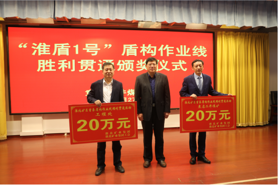 在袁店二礦,劉杰首先向參與“淮盾1號(hào)”盾構(gòu)作業(yè)線勝利貫通的袁店二礦、工程處兩家單位表示祝賀,并分別為他們進(jìn)行了頒獎(jiǎng)。劉杰指出,盡管“淮盾1號(hào)”盾構(gòu)施工在前期遇到了諸多困難,但在袁店二礦、工程處密切配合下,一路攻堅(jiān)克難、闖關(guān)奪隘,最終提前實(shí)現(xiàn)了勝利貫通。劉杰表示,盾構(gòu)施工工藝的成功應(yīng)用,不僅高效破解了復(fù)雜地質(zhì)條件下掘進(jìn)進(jìn)尺、生產(chǎn)接替等方面的現(xiàn)實(shí)問(wèn)題,更為淮北礦業(yè)集團(tuán)打贏“巖巷掘進(jìn)攻堅(jiān)戰(zhàn)”進(jìn)行了成功實(shí)踐。