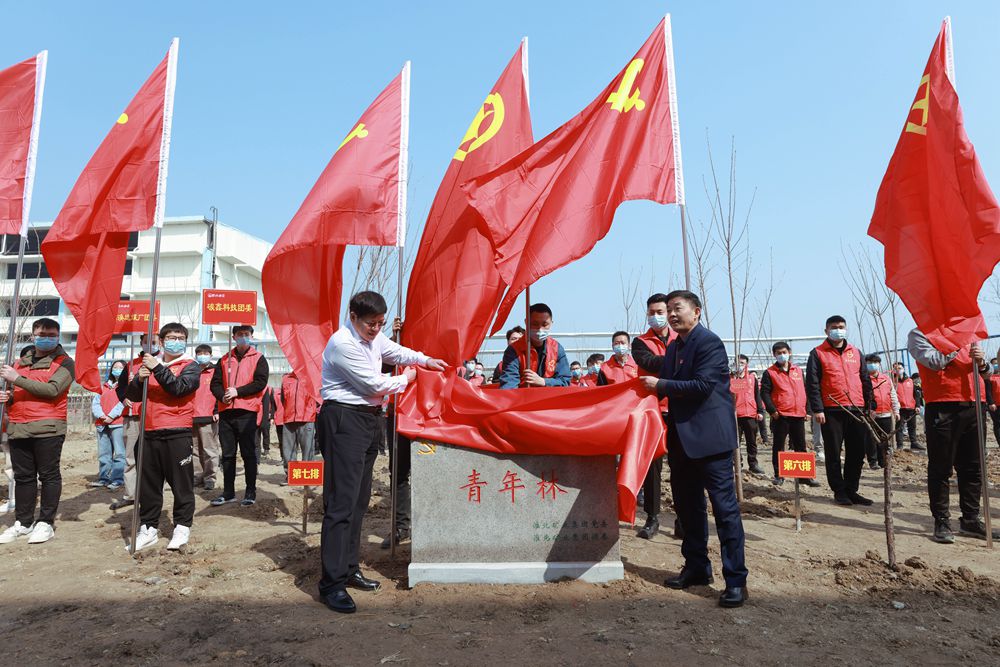 迎著溫暖的春風,一大片系上美好寓意紅絲帶的“青年林”已在春風中昂然屹立。