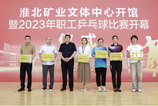 在中秋、國(guó)慶來(lái)臨之際,9月26至27日,淮北礦業(yè)集團(tuán)在新落成的文體中心舉辦“喜迎國(guó)慶、‘乒’搏有你”2023年職工乒乓球比賽,經(jīng)過(guò)兩天的激烈比拼,決出了男子團(tuán)體、女子團(tuán)體、男子單打、女子單打、優(yōu)秀組織獎(jiǎng)等各類獎(jiǎng)項(xiàng),集團(tuán)工會(huì)第一副主席劉杰和工會(huì)、物業(yè)分公司相關(guān)負(fù)責(zé)人為獲獎(jiǎng)單位和選手頒獎(jiǎng)。
