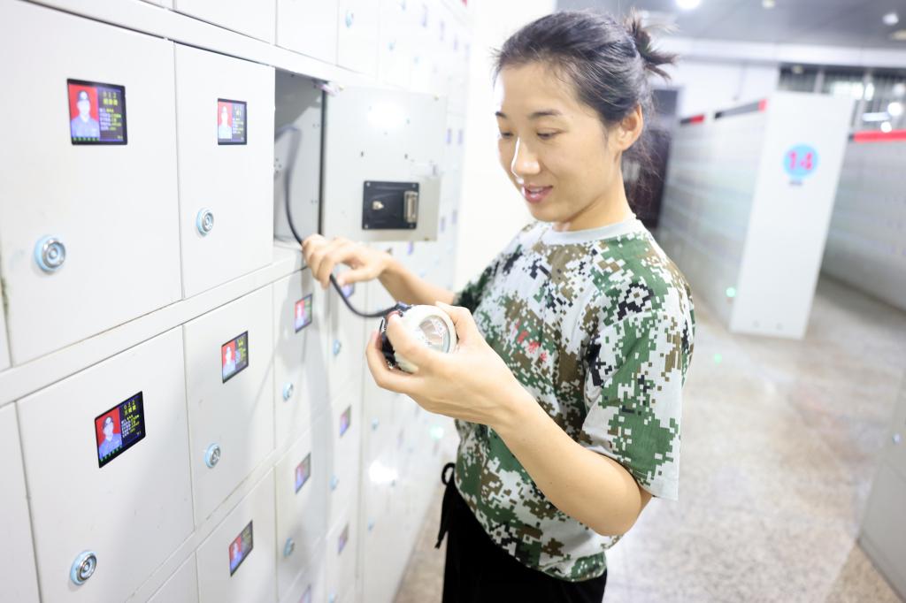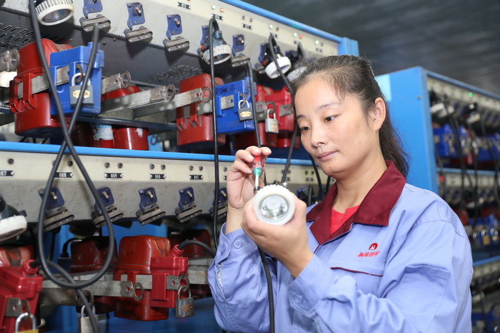 燈房女工李娜認真維護礦燈