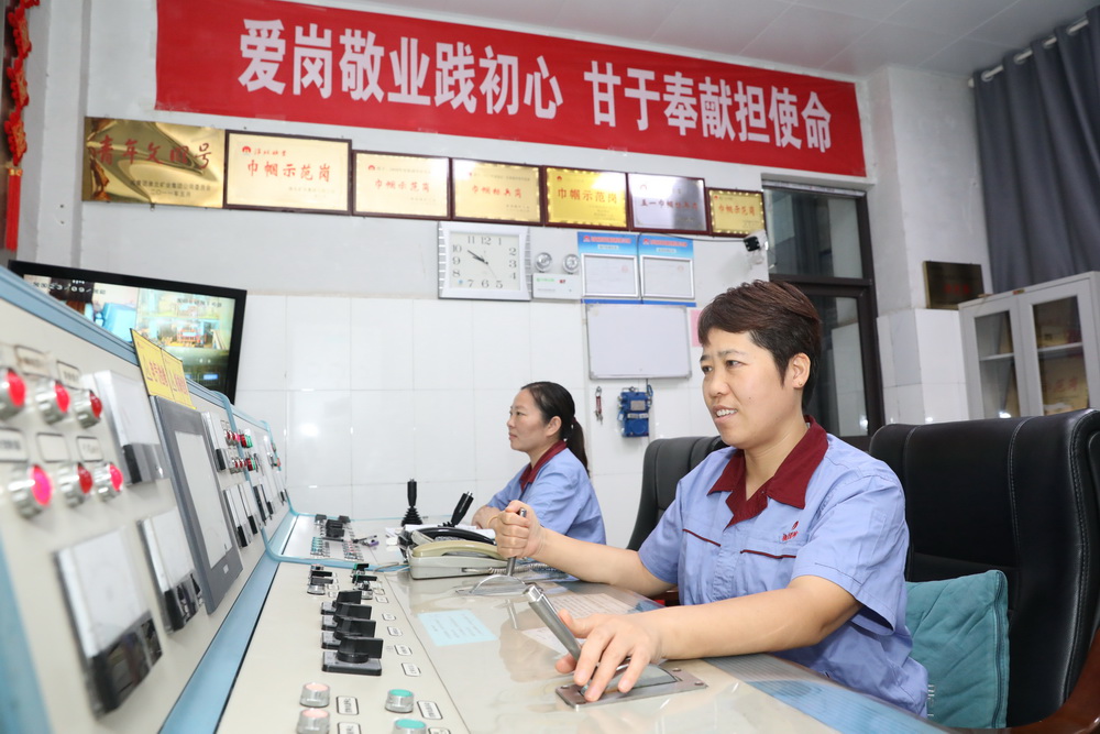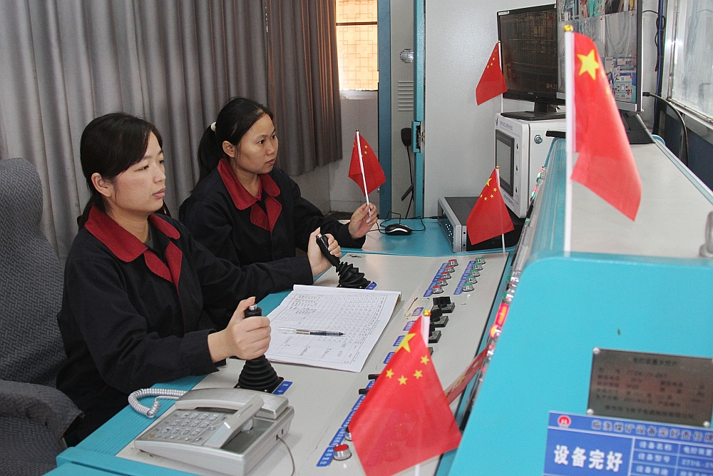 保運區(qū)新副井女工顏夢薇、榮俊蘭執(zhí)行當班提升工作任務