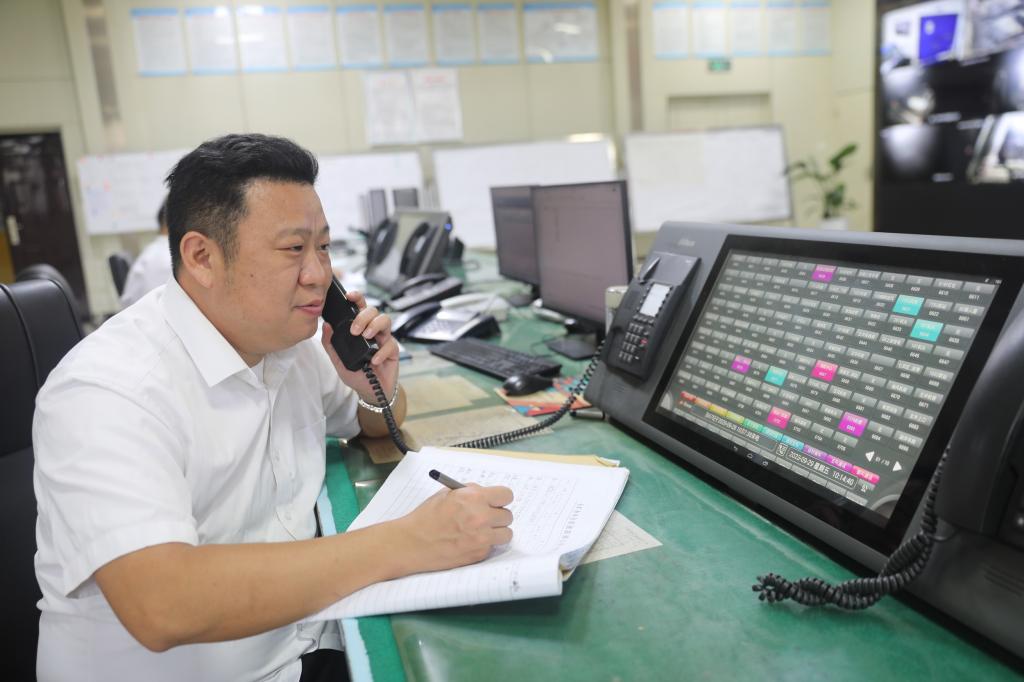 調(diào)度指揮中心調(diào)度員李強進行當班生產(chǎn)調(diào)度