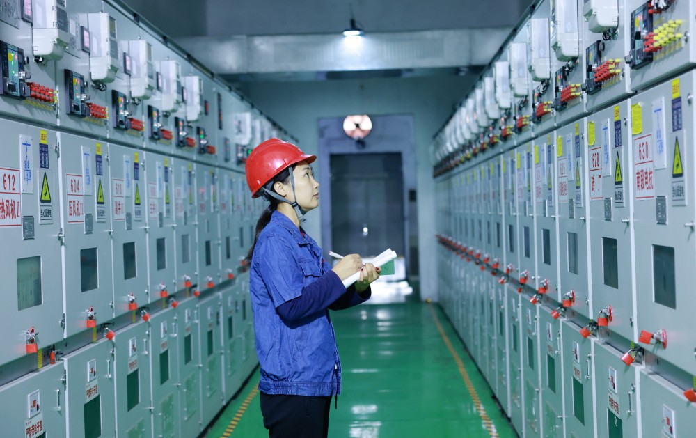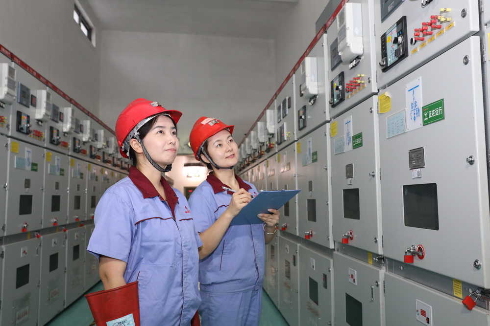 35KV變電女工謝妍妍、張海玲巡查電器設(shè)備