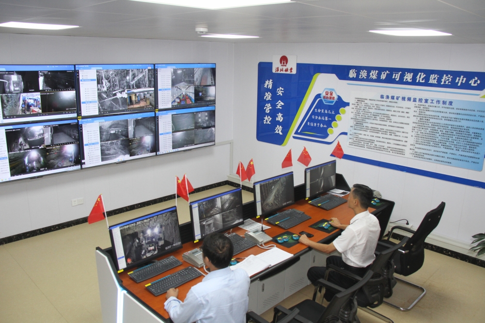 調(diào)度指揮中心調(diào)度員目不轉(zhuǎn)睛的盯著調(diào)度大屏,調(diào)度指揮井下管理情況,并認真做著記錄。