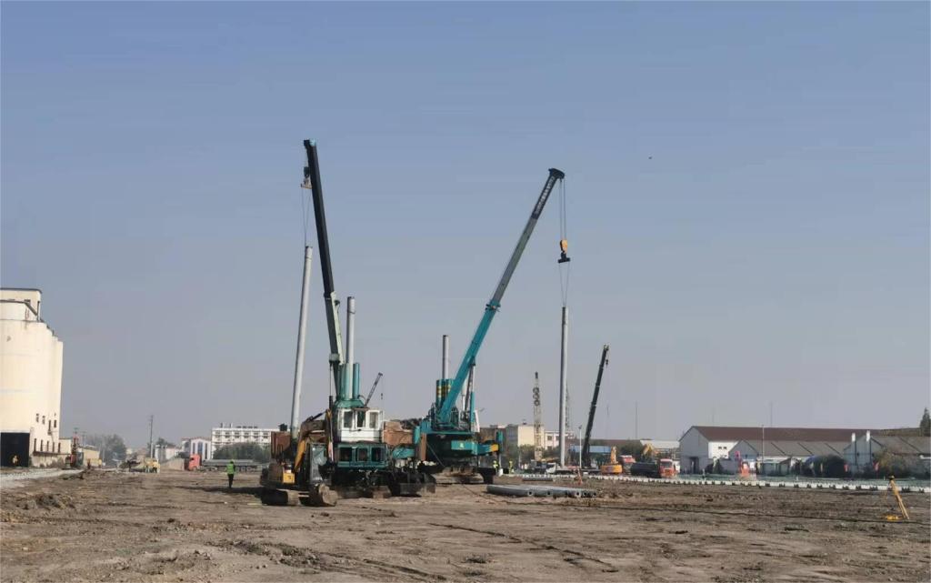 “8月31日開(kāi)工儀式后,項(xiàng)目部進(jìn)場(chǎng)施工。目前,場(chǎng)內(nèi)樁基施工已完成95%;集裝箱裝卸場(chǎng)地、露天堆場(chǎng)、跨鐵路線倉(cāng)庫(kù)進(jìn)入基礎(chǔ)施工階段;專用線鐵路改造施工已經(jīng)過(guò)半?!惫こ滩坎块L(zhǎng)孟磊介紹,當(dāng)下正值秋季施工黃金期,11月份集裝箱裝卸場(chǎng)地、露天堆場(chǎng)開(kāi)始混凝土澆筑,12月底具備運(yùn)營(yíng)條件。