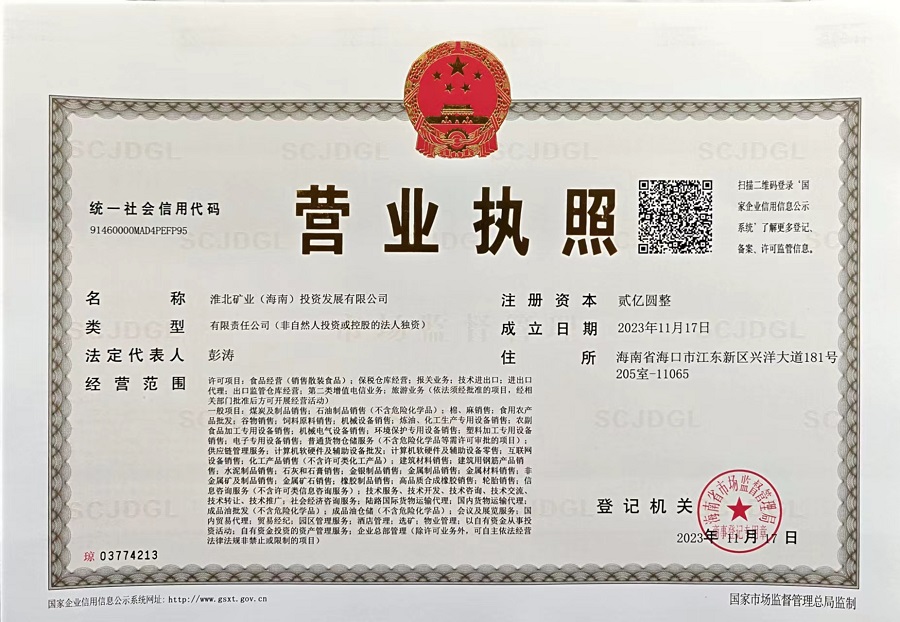 11月17日,淮北礦業(yè)(海南)投資發(fā)展有限公司(以下簡稱淮礦海南公司)在海南省??谑薪瓥|新區(qū)注冊(cè)成立。該公司為淮北礦業(yè)控股股份有限公司投資設(shè)立的全資子公司,主要從事國內(nèi)國際大宗商品貿(mào)易、產(chǎn)品加工增值及對(duì)外投資等業(yè)務(wù)。