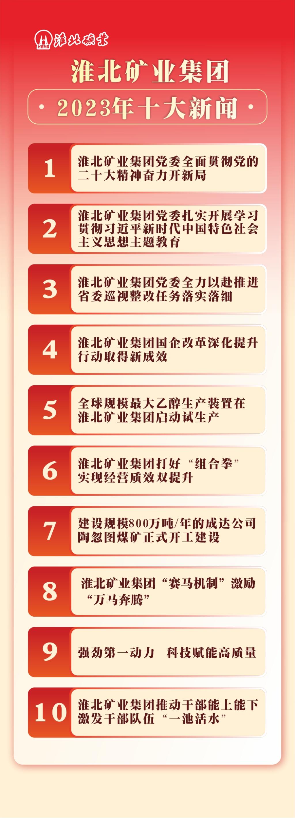 2023年是全面貫徹黨的二十大精神的開局之年,淮北礦業(yè)集團(tuán)黨委把學(xué)習(xí)宣傳貫徹黨的二十大精神作為首要政治任務(wù),在全面學(xué)習(xí)、全面把握、全面落實(shí)上下功夫、求實(shí)效,著力引導(dǎo)廣大黨員干部職工把思想和行動(dòng)統(tǒng)一到黨的二十大精神上來,把智慧和力量凝聚到黨的二十大提出的目標(biāo)任務(wù)上來,奮力譜寫高質(zhì)量發(fā)展新篇章。一年來,集團(tuán)黨委舉辦“黨的二十大精神輪訓(xùn)班暨中高層管理人員領(lǐng)導(dǎo)力素質(zhì)提升班”,開設(shè)“學(xué)習(xí)宣傳貫徹黨的二十大精神”“黨的二十大精神在礦區(qū)”宣傳專欄,開展“舉旗幟·送理論”等各類專題宣講1400余場次,推動(dòng)黨的二十大精神入腦入心、落地生根,交出了一份精彩答卷。集團(tuán)領(lǐng)導(dǎo)班子先后7年在省委綜合考核中被評(píng)為“優(yōu)秀”,2022年度選人用人工作總體評(píng)價(jià)滿意度在21家省管企業(yè)中排名第一;集團(tuán)公司紀(jì)委連續(xù)4年在省紀(jì)委監(jiān)委考核中被評(píng)為“優(yōu)秀”;集團(tuán)公司先后在省委主題教育座談會(huì)、全省組織工作會(huì)、全省基層思想政治工作交流會(huì)上作發(fā)言;主題教育、省委巡視整改成效均被評(píng)為“好”的等次。企業(yè)發(fā)展逆勢而進(jìn),全年?duì)I業(yè)收入、利潤總額均創(chuàng)歷史新高,位居全省“賽馬”第一方陣。