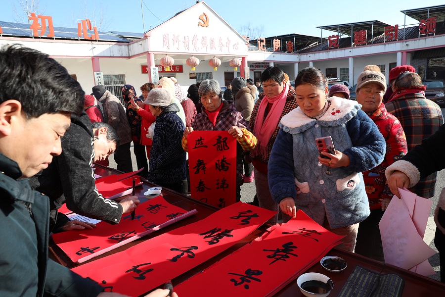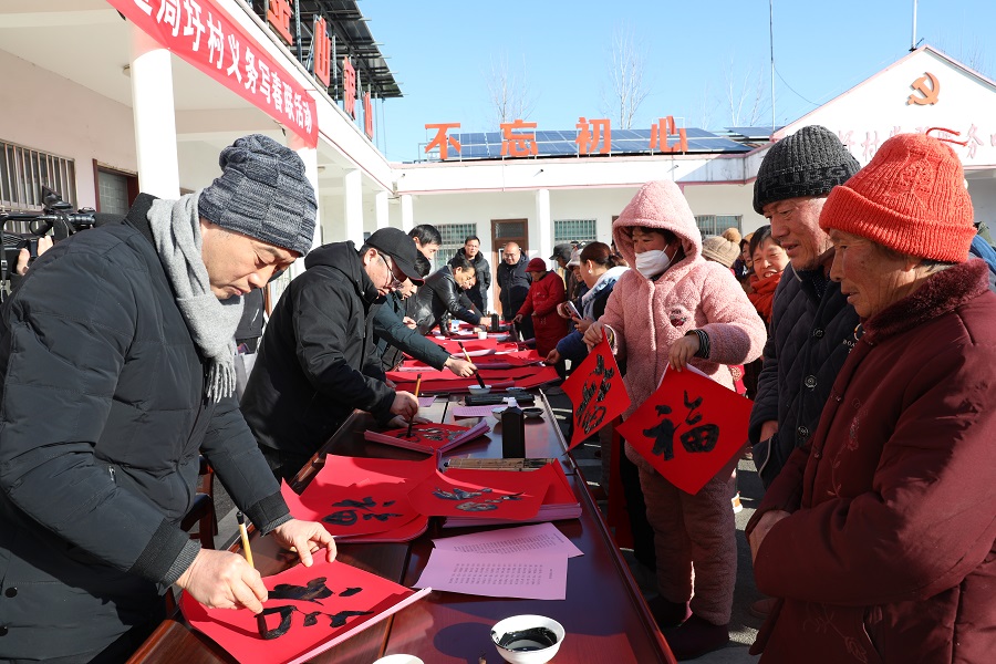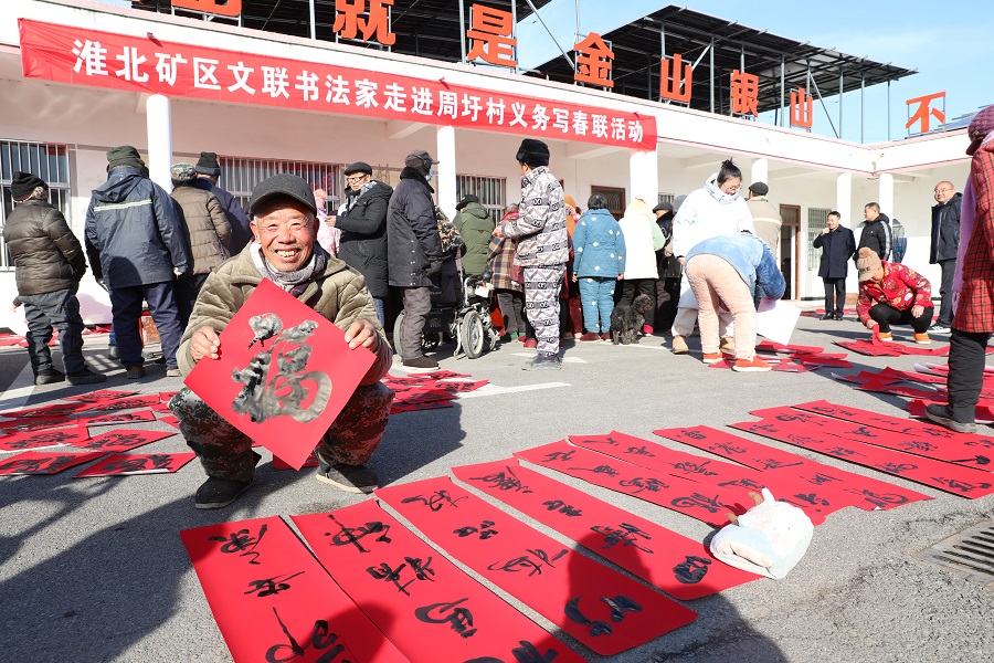 1月23日,淮北礦業(yè)集團工會組織礦區(qū)書法家深入定點幫扶鄉(xiāng)村——濉溪縣鐵佛鎮(zhèn)周圩村,開啟新年義務(wù)書贈春聯(lián)系列活動,現(xiàn)場揮毫潑墨“迎新春、話小康、助振興”,為村民送上新春祝福和美好祝愿,為建設(shè)宜居宜業(yè)和美鄉(xiāng)村,加快鄉(xiāng)村振興匯聚精神力量。