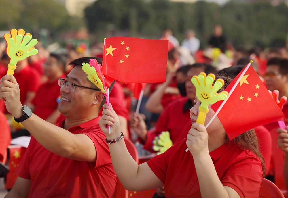 演出在舞蹈《鼓舞神州》中拉開序幕,隨后男女聲二重唱《新萬泉河水》、相聲《機智問答》、魔術(shù)《快樂十分》、京劇《武家坡》、小品《金錢與孝子》等節(jié)目輪番上演。一首首膾炙人口的歌曲,一段段婉轉(zhuǎn)悠揚的旋律,一支支優(yōu)美多姿的舞蹈,讓現(xiàn)場觀眾沉浸在歡樂的氛圍中。臺上演員們?nèi)橥度?,臺下觀眾積極互動,或跟唱歌曲,或打著節(jié)拍,現(xiàn)場氣氛融融。最后,演出在歌曲《奮斗吧追夢人》中圓滿落下帷幕。