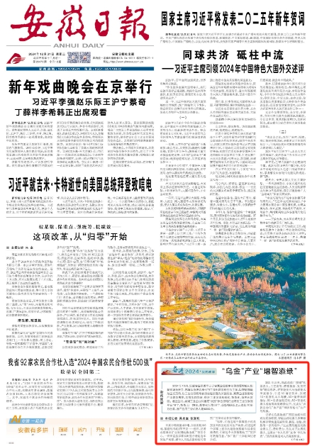 來(lái)源:《安徽日?qǐng)?bào)》2024年12月31日 1版