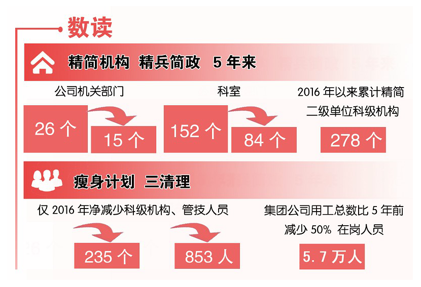 精簡機構,精兵簡政。5年來,實行公司機關大部制改革,機關部門由26個減至15個,科室由152個減至84個,2016年以來累計精減二級單位科級機構278個,兩級機關更加精干高效。推廣“一礦兩井、一企多點、一人多崗”模式。2014年,對位置相近、資源相連的朔里礦井、石臺礦井合并重組,壓縮管理崗位和非生產崗位設置,成立朔石礦業(yè)公司,實行一套班子、一個機關管理,降低運行成本。2017年上半年,朔石礦業(yè)公司盈利7000萬元。2016年,對海孜礦井和青東礦井合并成一個機構,壓縮機構和管理崗位,降低管理成本,提高管理效能。