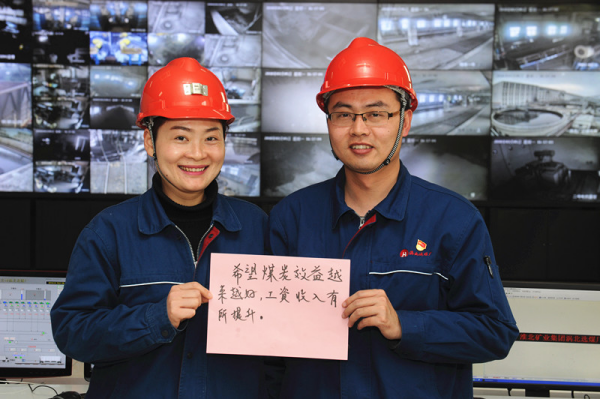 機(jī)電車間張小敏夫婦希望煤炭企業(yè)效益越來(lái)越好,大伙的工資收入有所提升。