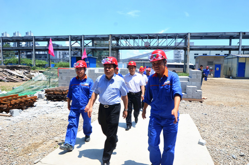 7月18日,滁州市委副書(shū)記、市長(zhǎng)許繼偉在定遠(yuǎn)縣縣委書(shū)記萬(wàn)瑞健的陪同下到華塑股份公司調(diào)研二期工程建設(shè)情況。華塑股份公司領(lǐng)導(dǎo)丘永桂、高旭及鹽化管委會(huì)相關(guān)人員陪同調(diào)研。