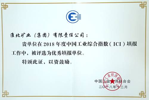 2018年12月28日至29日,中國工業(yè)經(jīng)濟年會在浙江嘉興召開,淮北礦業(yè)集團在會上受到表彰,被評為“2018年度中國工業(yè)綜合指數(shù)(ICI)優(yōu)秀填報單位”,這也是集團公司連續(xù)第三年被評為優(yōu)秀填報單位。