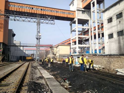 這兩處地磅基礎為混凝土澆筑,均是長度4.8米、寬度2.8米,因平常線路運量較大、機車過往密集,沒有足夠時間進行作業(yè);同時又存在地磅兩側線路高低銜接不好,軌道下沉量不一致的安全隱患。因此,該段特意選定在春節(jié)放假的特殊時段進行拆除施工。整個施工動用軌道車、側翻車、挖掘機等多臺大型設備配合,對2處地磅基礎范圍以及地磅兩側的線路進行破碎、清篩,回填新道碴、整修線路軌道幾何尺寸,全部作業(yè)將淸挖路基雜物80方,回填道碴100方,更換混凝土枕80根,計劃在年初四煤礦恢復生產(chǎn)前完工。