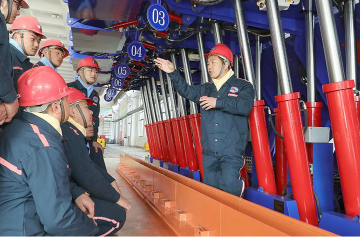淮北礦業(yè)集團(tuán)工匠大師王忠才在講授智能化采煤機(jī)操作要領(lǐng)。(陳彪 攝)