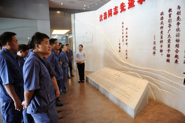 黨員干部首先來到“沈浩同志先進(jìn)事跡陳列館”,參觀了沈浩同志生前工作、生活以及帶領(lǐng)小崗人民艱苦奮斗、加快發(fā)展的事跡展覽,認(rèn)真聽取了講解員對沈浩同志事跡的介紹。沈浩同志在小崗村任職6年,始終以黨和人民的事業(yè)為重,勤奮務(wù)實(shí)、無私奉獻(xiàn),用年輕的生命詮釋了一個共產(chǎn)黨員對黨和人民的無限忠誠,在廣大干部群眾中樹起了一座巍峨的豐碑,他用行動詮釋了黨員干部的奉獻(xiàn)精神。調(diào)度信息中心黨支部書記莊主民深有感觸的說:“學(xué)習(xí)沈浩同志的先進(jìn)事跡,使我接受了一次心靈的洗禮。他全心全意為小崗村謀發(fā)展的勁頭和精神鼓舞了我,激勵了我,我將以沈浩同志為鏡,立足本職、扎根基層,爭做一名敢擔(dān)當(dāng)?shù)暮酶刹??!?/p>