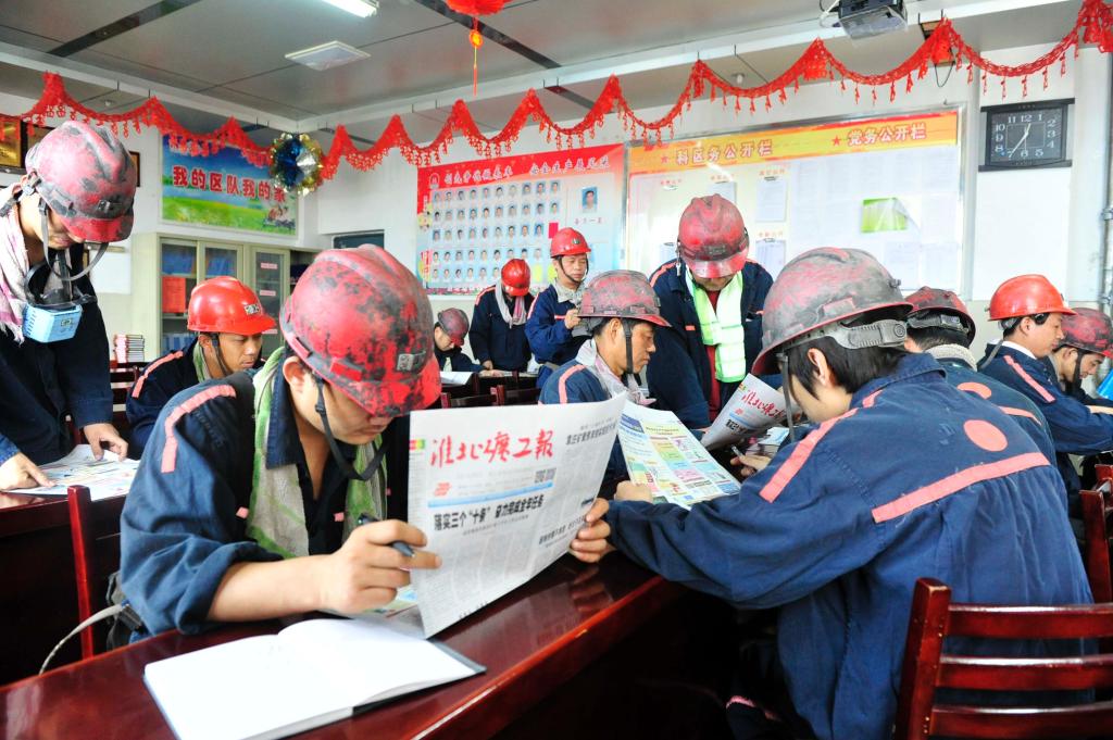 連日來,許疃礦圍繞淮北礦業(yè)“三十條”主題,通過網(wǎng)站、報紙、展板等宣傳陣地,突出安全、穩(wěn)產(chǎn)、增效工作重點,領(lǐng)悟、貫徹、落實淮北礦業(yè)2015年下半年工作會議精神實質(zhì),確保實現(xiàn)下半年和全年各項目標(biāo)任務(wù)。圖為7月16日中午,該礦綜采二區(qū)職工在班前會前深入學(xué)習(xí)“三十條”。
