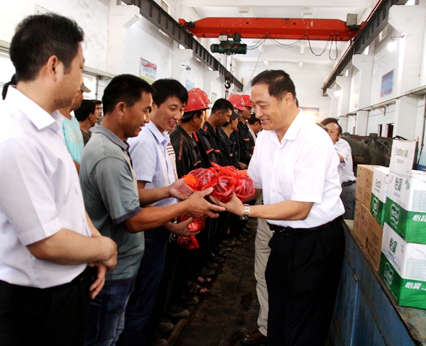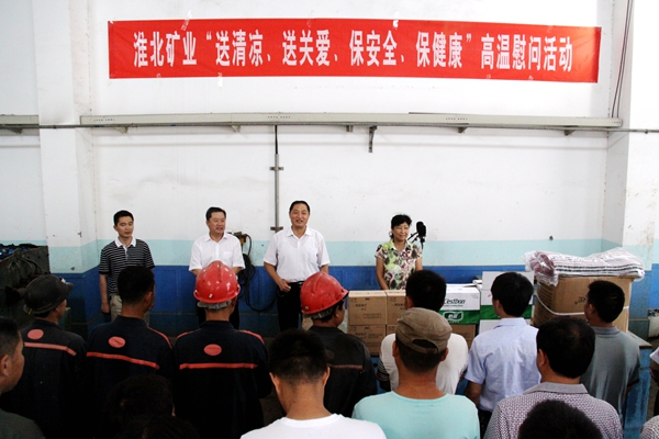 上午10點(diǎn)鐘,在蘆嶺礦有關(guān)人員的陪同下,淮北礦業(yè)工會(huì)負(fù)責(zé)人一行來(lái)到蘆嶺礦運(yùn)輸區(qū)充電房,就開(kāi)展“送清涼、送關(guān)愛(ài)、保安全、保健康”慰問(wèn)活動(dòng)的目的意義及當(dāng)前面臨的嚴(yán)峻經(jīng)營(yíng)形勢(shì)任務(wù)和壓力進(jìn)行了闡述和說(shuō)明,叮囑越是在高溫季節(jié)越要關(guān)心職工的生活、休息和安全,要讓職工休息好,保證職工有充沛的精力用心每一天,干好每件事。特別在當(dāng)前的經(jīng)營(yíng)形勢(shì)下,蘆嶺礦全體干群要樹(shù)立戰(zhàn)勝困難的勇氣和信心,認(rèn)真落實(shí)好淮北礦業(yè)下半年工作會(huì)議精神,嚴(yán)格執(zhí)行好三個(gè)“十條規(guī)定”,緊緊圍繞淮北礦業(yè)開(kāi)展的“四個(gè)零”的任務(wù)目標(biāo),嚴(yán)格現(xiàn)場(chǎng)管理,嚴(yán)格任務(wù)落實(shí),嚴(yán)格責(zé)任追究,嚴(yán)格瓦斯、防突和“一通三防”管理,進(jìn)一步提高礦井的抗災(zāi)能力,努力實(shí)現(xiàn)蘆嶺礦更長(zhǎng)的安全周期。隨后,淮北礦業(yè)工會(huì)負(fù)責(zé)人向在場(chǎng)的干部職工發(fā)放了慰問(wèn)品,希望大家在高溫期間,以安全規(guī)程和有關(guān)制度嚴(yán)格要求自己,不違章、不蠻干,嚴(yán)格操作規(guī)程,搞好聯(lián)保互保,確保礦井安全生產(chǎn)。