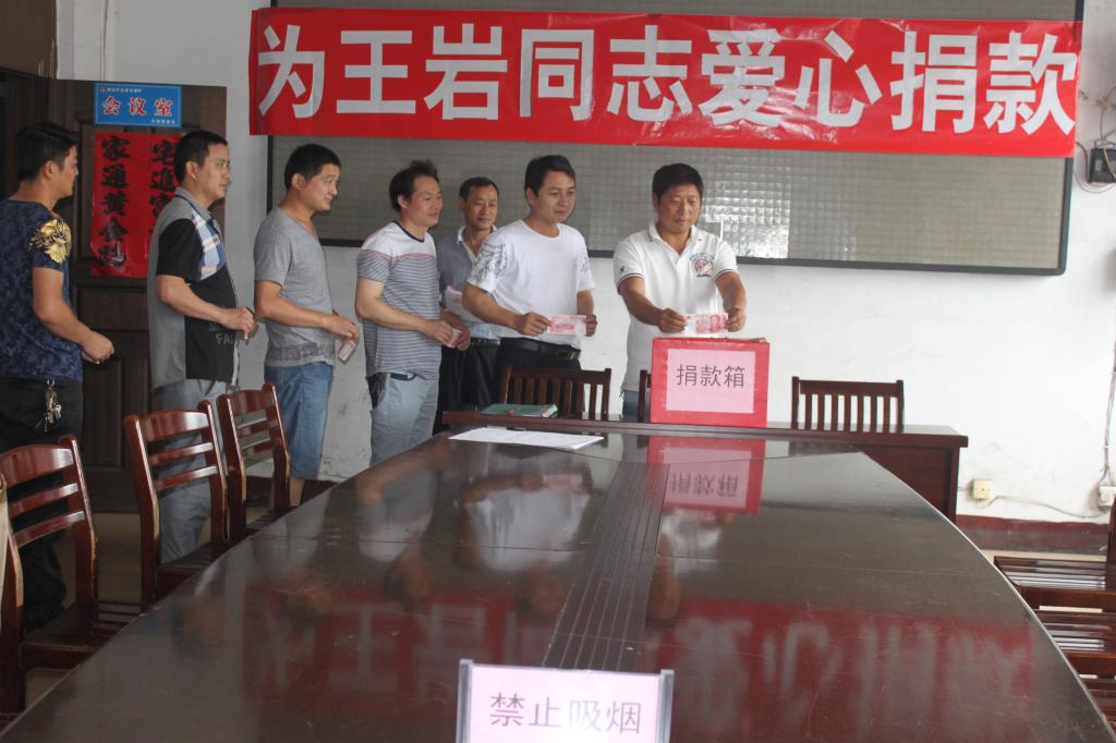 王巖是該項目部的一名普通職工,工作積極主動、愛崗敬業(yè)、待人誠懇,得到項目部干群的一致好評。福無雙至,禍不單行。2014年11月份,王巖的父親患有腦溢血,在阜陽住院花去十幾萬元;2015年5月10號,王巖又被查出患有鼻咽癌,在淮北住院已經(jīng)花去了七八萬塊錢,家中所有的積蓄已經(jīng)花完,家庭生活和治療已經(jīng)陷入困境。在得知他的情況后,項目部積極籌劃,發(fā)起向王巖同志進行愛心救助的倡議。倡議很快得到項目部廣大職工的熱烈響應(yīng),廣大職工踴躍捐款。病魔無情,人間有愛,在募捐現(xiàn)場,30元、50元、100元……,每一個人的捐款都是在為王巖的生命“加油”,幫他和他的家庭撐起一片幸福的天!