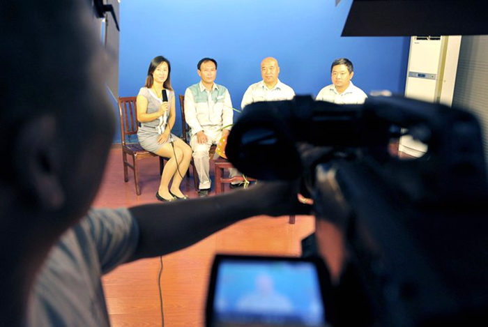 圖為該公司正在錄制煉焦車間領導班子“變革對標,生存提效”電視訪談。