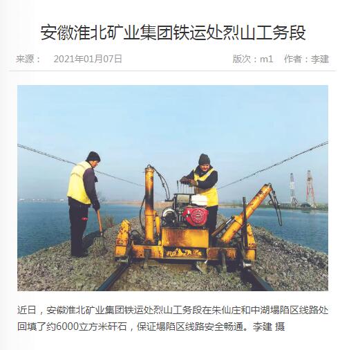 《中國煤炭報》:淮北礦業(yè)集團鐵運處保證塌陷區(qū)線路安全暢通