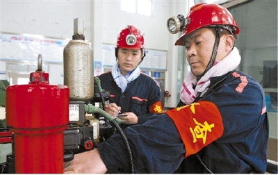 為實現(xiàn)零工傷、零事故、零違章的“三零”目標(biāo),淮北礦業(yè)集團袁店二礦持續(xù)開展安全生產(chǎn)監(jiān)督檢查。圖為該礦督查員在副井檢查設(shè)備運行狀況。孫健 攝