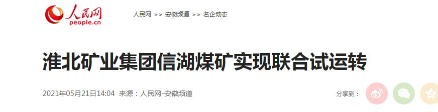 5月18日,淮北礦業(yè)集團(tuán)信湖煤礦順利實(shí)現(xiàn)聯(lián)合試運(yùn)轉(zhuǎn),每年可為集團(tuán)新增300萬噸優(yōu)質(zhì)煤炭資源。這是該集團(tuán)進(jìn)入“十四五”建成的首批重點(diǎn)工程項(xiàng)目。