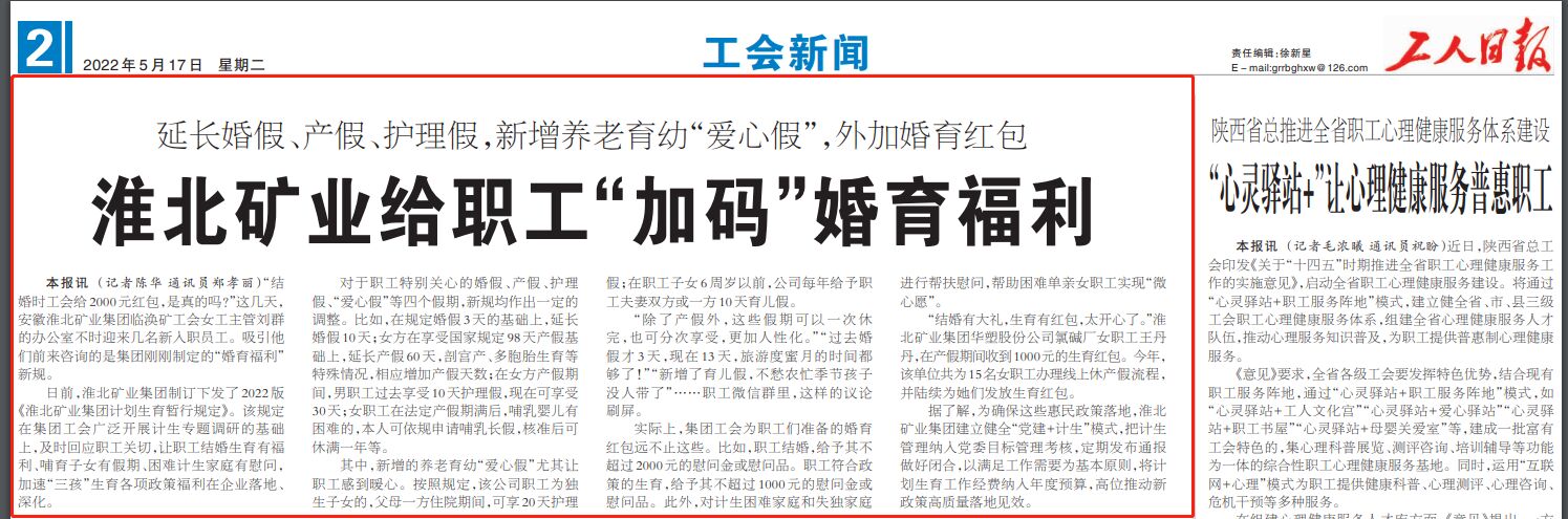 淮北礦業(yè)給職工“加碼”婚育福利