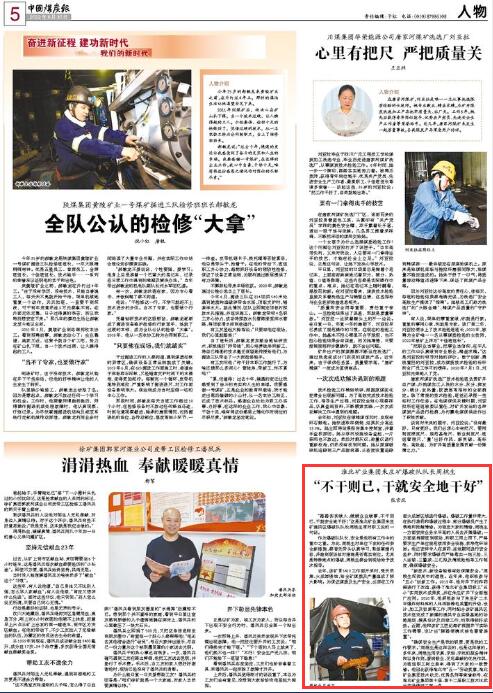《中國煤炭報》:淮北礦業(yè)集團朱莊礦爆破隊隊長周桃生“不干則已,干就安全地干好”