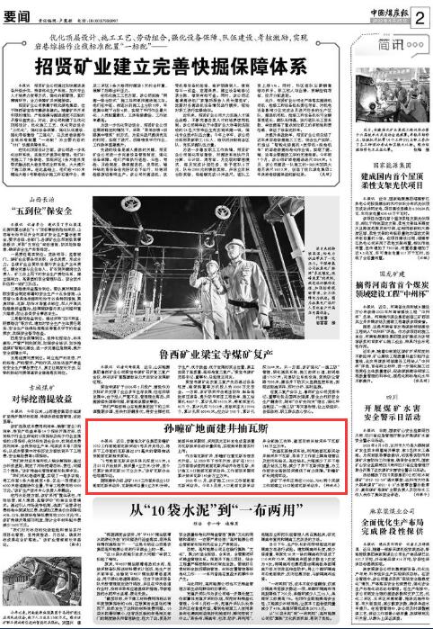 “改造瓦斯抽采系統(tǒng),利用地面瓦斯采動井抽采井下瓦斯,取消了工作面上隅角埋管以及定向長鉆孔、高位鉆孔,大幅減少了井下巷道及鉆孔工程,減少了井下瓦斯排放量,為工作面安全高效回采提供了有力保障。”孫疃礦礦長周擁軍說。