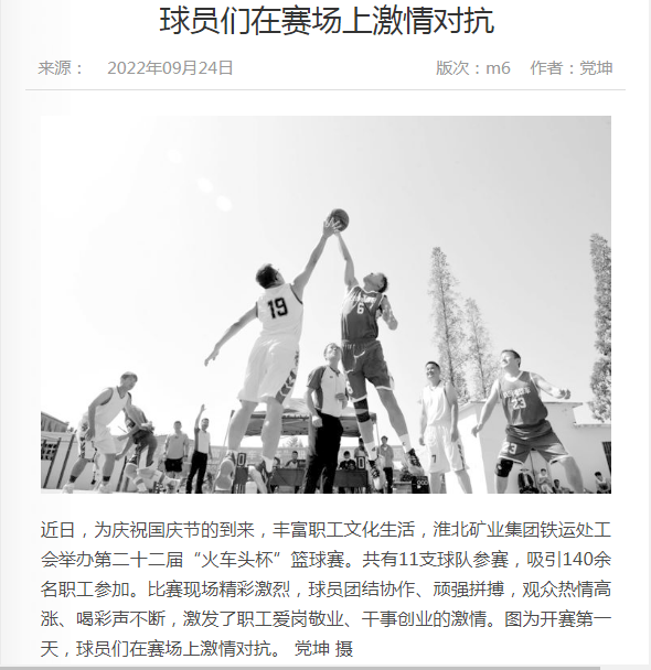 《中國煤炭報》:淮北礦業(yè)集團鐵運處舉辦“火車頭杯”籃球賽