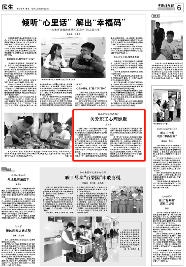 《中國煤炭報》:淮北礦業(yè)集團臨渙選煤廠關(guān)愛職工心理健康