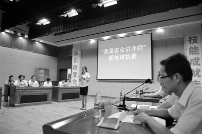 8月7日,淮北礦業(yè)孫疃煤礦舉行“我是安全講評(píng)師”團(tuán)體對(duì)抗賽。該礦將以前呆板的說教式安全培訓(xùn)變?yōu)槭鹿室曨l分析,精心選擇近年來煤礦發(fā)生的典型事故案例視頻,讓參賽隊(duì)結(jié)合事故經(jīng)過,對(duì)事故案例的原因、防范措施進(jìn)行剖析,提高了廣大干部職工排查隱患、分析事故的能力,在礦區(qū)營造了人人爭(zhēng)當(dāng)“安全講評(píng)師”的良好氛圍。王亮 攝