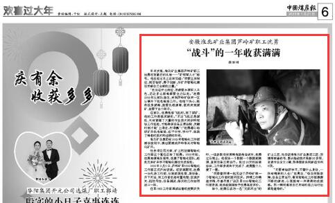 《中國煤炭報》:淮北礦業(yè)集團(tuán)蘆嶺礦職工沈勇“戰(zhàn)斗”的一年收獲滿滿