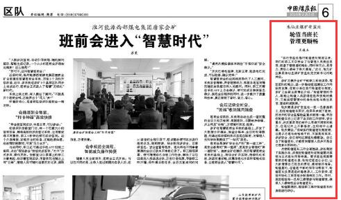 “自打安監(jiān)處推行輪值班長制度以來,我們的職工不僅學會了與管理人員換位思考,知道了管理者的難處,同時學習力、思考力、責任心都有了很大提高?!苯?,淮北礦業(yè)集團朱仙莊煤礦安監(jiān)處黨支部書記劉乾坤說。