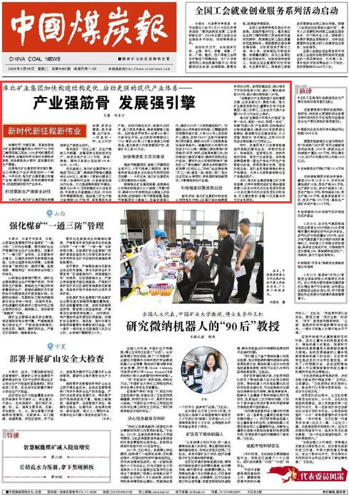 《中國煤炭報》頭版頭條:淮北礦業(yè)集團產(chǎn)業(yè)強筋骨 發(fā)展強引擎
