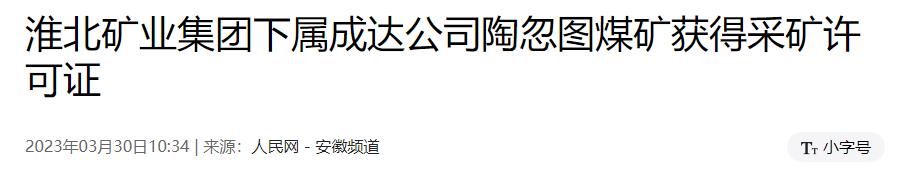 3月28日,內蒙古自治區(qū)自然資源廳、鄂爾多斯市自然資源局向淮北礦業(yè)集團下屬成達礦業(yè)有限公司頒發(fā)了陶忽圖煤礦采礦許可證。這標志著淮北礦業(yè)集團下屬成達公司陶忽圖煤礦項目報批工作繼取得項目核準和環(huán)評報告批復后,又一次取得實質性突破。