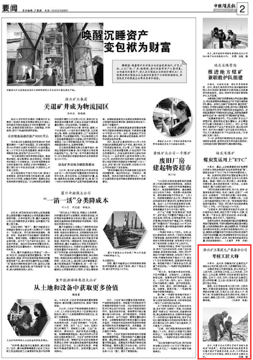 淮北礦業(yè)集團(tuán)生產(chǎn)裝備分公司考核工匠大師
