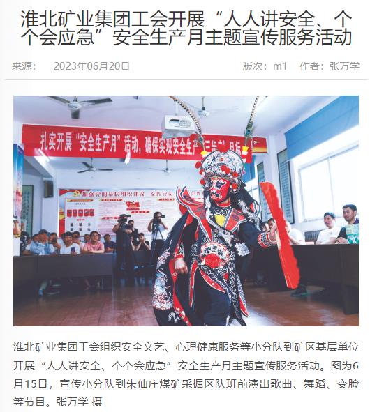 《中國煤炭報(bào)》:淮北礦業(yè)集團(tuán)工會(huì)開展“人人講安全、個(gè)個(gè)會(huì)應(yīng)急”安全生產(chǎn)月主題宣傳服務(wù)活動(dòng)