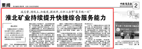 淮北礦業(yè)持續(xù)提升快捷綜合服務(wù)能力