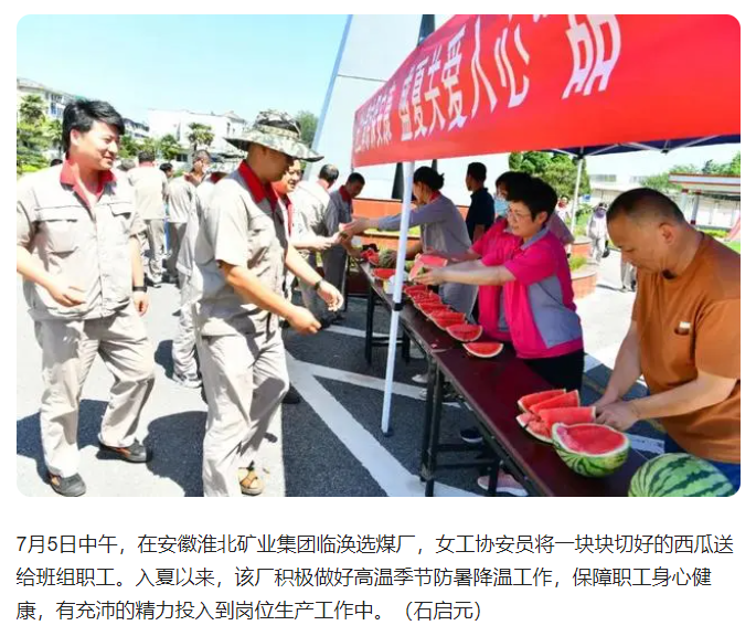 《工人日?qǐng)?bào)》:淮北礦業(yè)集團(tuán)臨渙選煤廠積極做好高溫季節(jié)防暑降溫工作