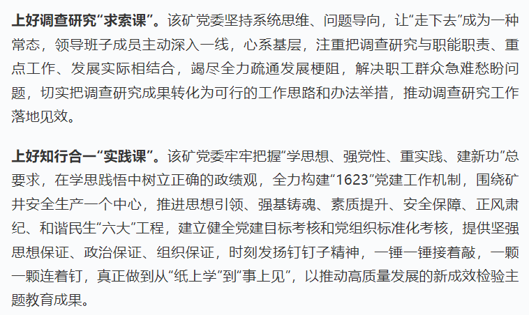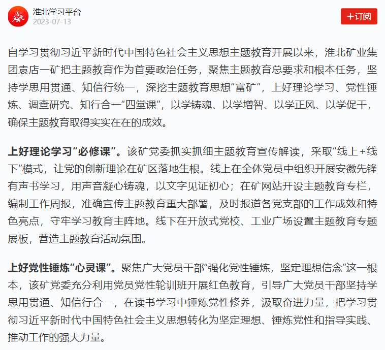 《學習強國》:淮北礦業(yè)集團袁店一礦——上好“四堂課” 確保主題教育走深走實
