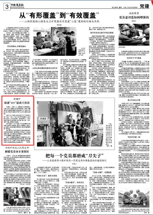 該礦“433”思政工作法中的“433”分別指“4送”“3進”“3多”。“4送”為礦領導送暖心、機關部門送關心、科區(qū)送愛心、班組送貼心,“3進”指黨支部書記進班組、進公寓、進心里,“3多”指多了解、多幫助、多服務。